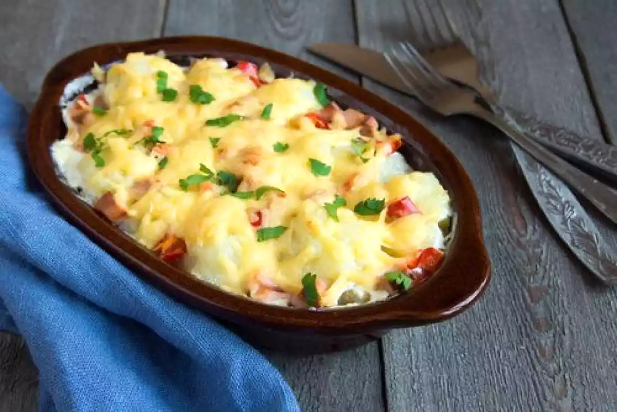Cartofi gratinati cu sunca si cascaval
