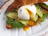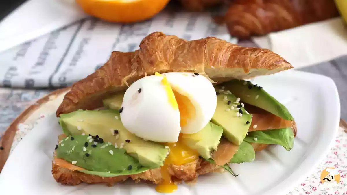 Nu totul trebuie să fie dulce. Dacă aveți croissante care nu mai sunt în cea mai bună formă, le puteți transforma într-o versiune delicioasă de sandwich. Deschide croissantul în jumătate și umple-l cu ingredientele tale preferate. În această rețetă am folosit avocado, somon afumat și un ou mollet (fiert moale). Acest sandwich este perfect pentru brunch, prânz sau o cină ușoară și puteți folosi și croissantele care s-au învechit fără a-și pierde din aromă. Combinația de unt din croissant cu avocado și somon este pur și simplu spectaculoasă.