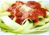 Pastele din dovlecel se prepara foarte simplu: se feliaza foarte subtire si se fierb asemenea pastelor si pot si insotite de acelasi tip de sos folosit la pastele normale.