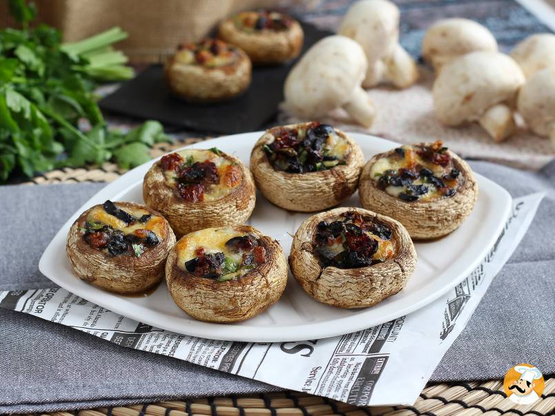 7. Ciuperci Champignon cu mozzarella, măsline și roșii uscate la soare