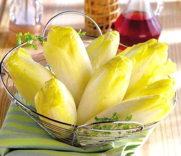 Pentru ca se cultiva la intuneric, andivele sunt lipsite de clorofila, de aici si culoarea alba a frunzelor.