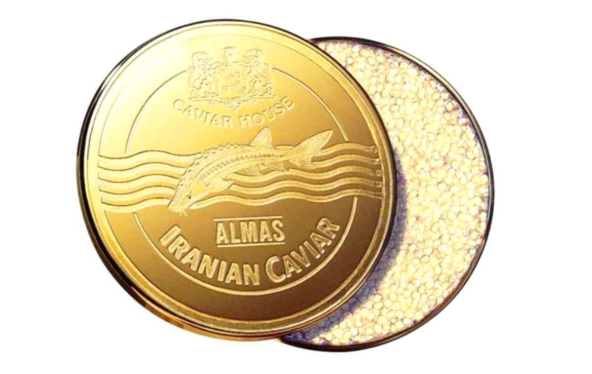 Produs din oua ce provin de la un nisetru albinos, o specie rara, care inoata in sudul Marii Caspice, unde se pare ca ar exista mai putina poluare, caviarul Almas (termenul iranian pentru diamant) este cel mai scump caviar, chiar si cel mai scump dintre alimentele din lume, potrivit www.guinnessworldrecords.com.