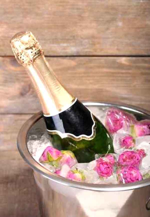 - Intr-o frapiera sau o galeata adaugati gheata. Daca utilizati o frapiera, umpleti-o 2/3 cu gheata; o galeata se umple pana la 2/3 din inaltinea sticlei de vin.