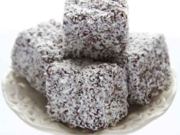 Lamingtons (prajitura cu glazura de ciocolata si nuca de cocos)