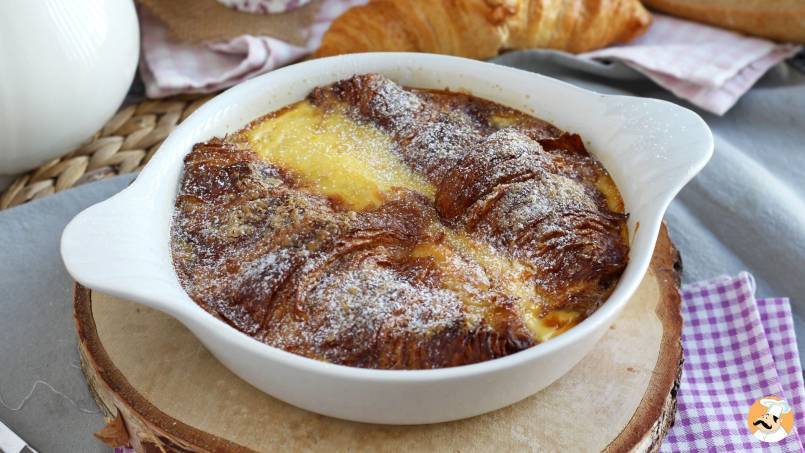 Dacă croissantul dvs. și-a pierdut deja prospețimea, unul dintre cele mai delicioase moduri de a-l folosi este să îl transformați într-o budincă. Acest desert moale și reconfortant vă va permite să dați o a doua viață croissantelor dvs. din ziua precedentă. Pentru a-l prepara, tăiați croissantele în bucăți mici și amestecați-le cu o cremă făcută din lapte, ouă, zahăr și o atingere de scorțișoară. Adăugați mere caramelizate pentru un contrast dulce și fructat. Rezultatul va fi o budincă cu mere și caramel care, pe lângă faptul că va valorifica croissantele tari, vă va umple casa cu o aromă delicioasă. Iată rețeta!