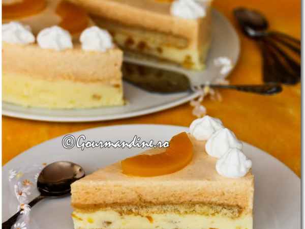 Tort cu mousse de pepene galben si crema cu piersici