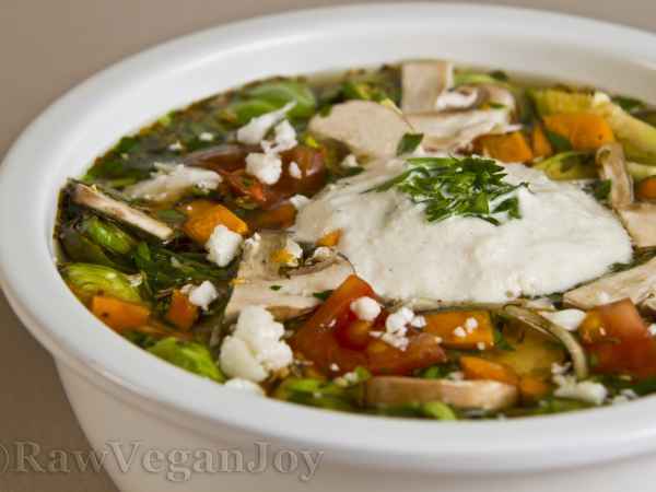 Supa de legume cu varza de bruxelles si smantana din caju (raw vegan)
