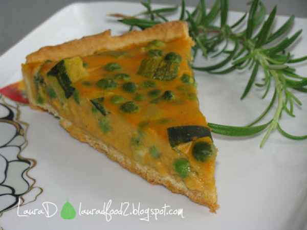 Tarta cu dovlecei, mazare si cartofi dulci