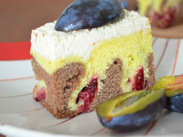 Prajitura marmorata cu prune si crema de branza
