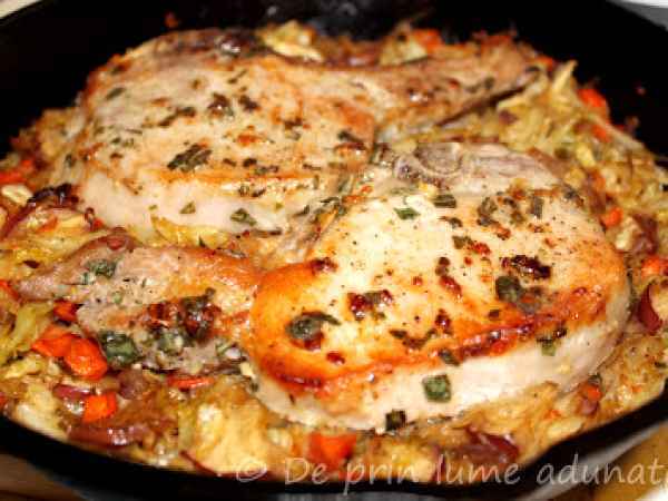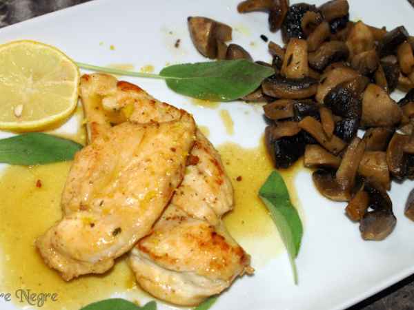 Pui in sos de lamaie cu salvie si garnitura de ciuperci
