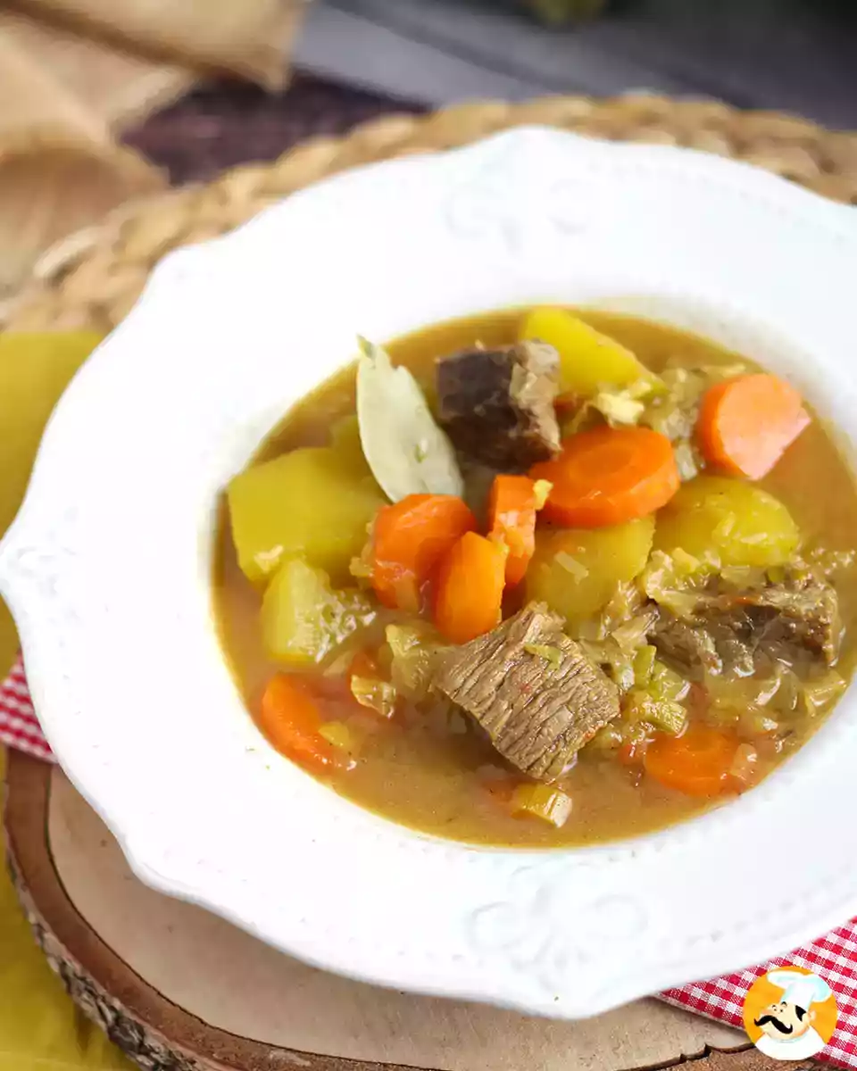 Un clasic reconfortant al bucătăriei casnice, în care carnea de vițel este fiartă la foc mic cu cartofi, morcovi și condimente pentru o tocană groasă și aromată. Perfectă pentru zilele reci și pentru a înmuia pâinea în ea.