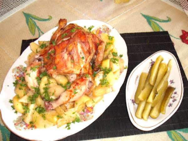Pui la cuptor cu cartofi natur