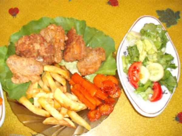 Creier pane cu cartofi prajiti si morcovi caramelizati
