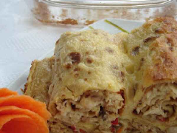 Clatite gratinate umplute cu carne de pui si ciuperci