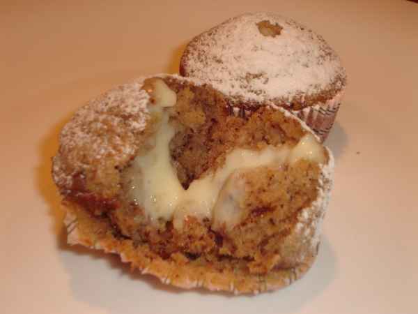 Muffins cu nuca si budinca de vanilie