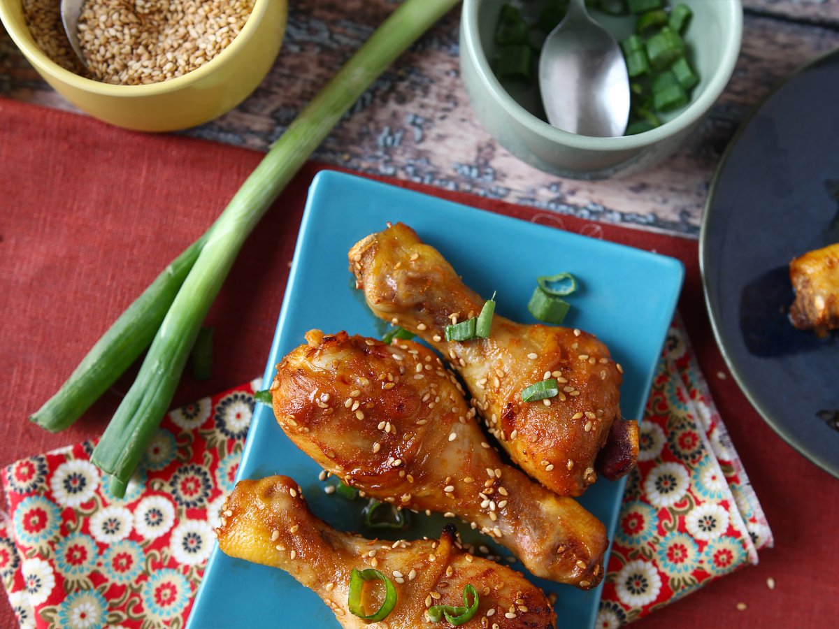 Acoperite într-o marinadă gustoasă cu arome japoneze, aceste copane de pui vor fi soluția perfectă pentru o masă rapidă și simplă de care toată lumea se va bucura! Secretul acestei rețete? O marinada nebună care ne va duce direct în Japonia. Puteti insoti aceste copane de pui cu orez, precum și legume gătite în același timp la cuptor, pentru o masa completă și echilibrată.