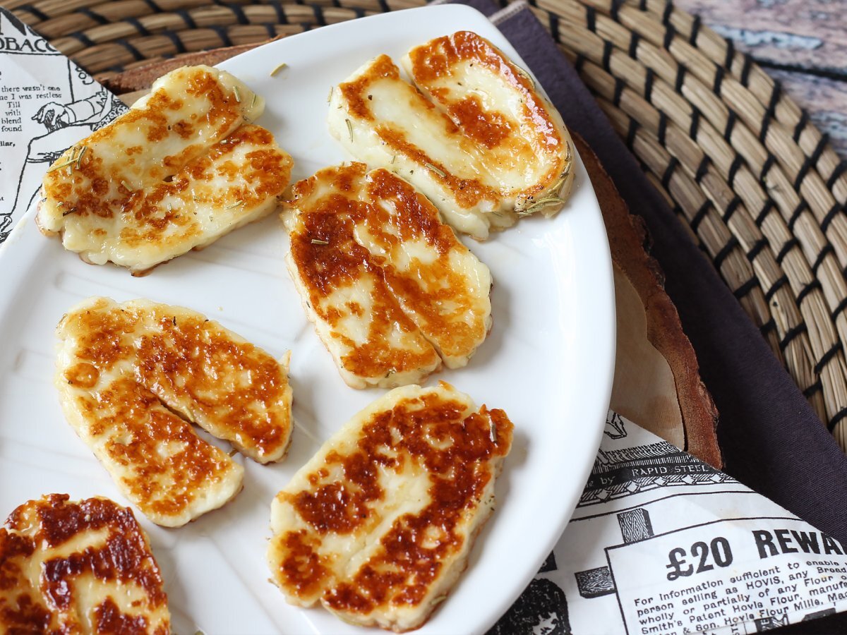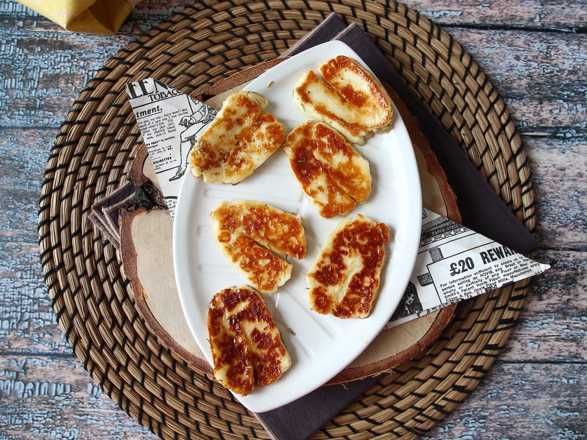 Halloumi prăjită la tigaie - cu miere și rozmarin