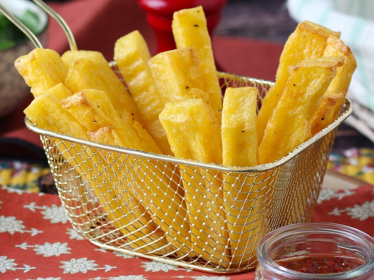 Încercați polenta prăjită în Air Fryer, o versiune sănătoasă și crocantă a acestui clasic! Realizată cu făină de porumb (fără gluten în mod natural), această rețetă este practică și delicioasă, garantând o garnitură echilibrată sau o gustare ușoară și gustoasă. Aurie la exterior și moale la interior, polenta crocantă este perfectă și cu sosuri. De asemenea, o puteți asezona cu ierburi, parmezan și condimente pentru un plus de savoare. Aflați cum să preparați acest fel de mâncare delicios rapid și ușor!