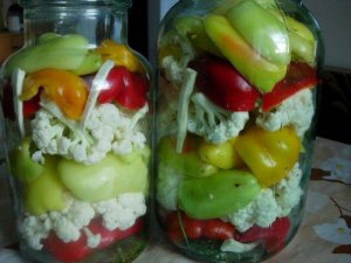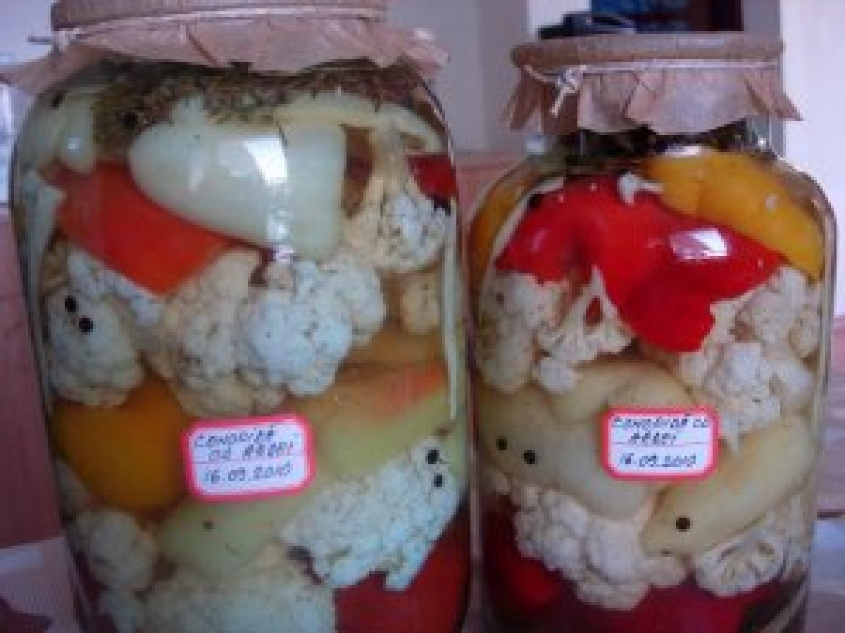 Ardei gras si conopida la borcan PrecedentulUrmătorul AlteleFoarte ușor15 min Trimite unui prieten Printează pagina Adresează o întrebare autorului Postează o poză cu rețeta gătită de tine Ingrediente 6 2 kg conopida 1 kg ardei gras amestec Hrean Marar uscat Telina tije cu Frunze verzi 2 plicuri picant fix 300 g zahar 600 ml otet
