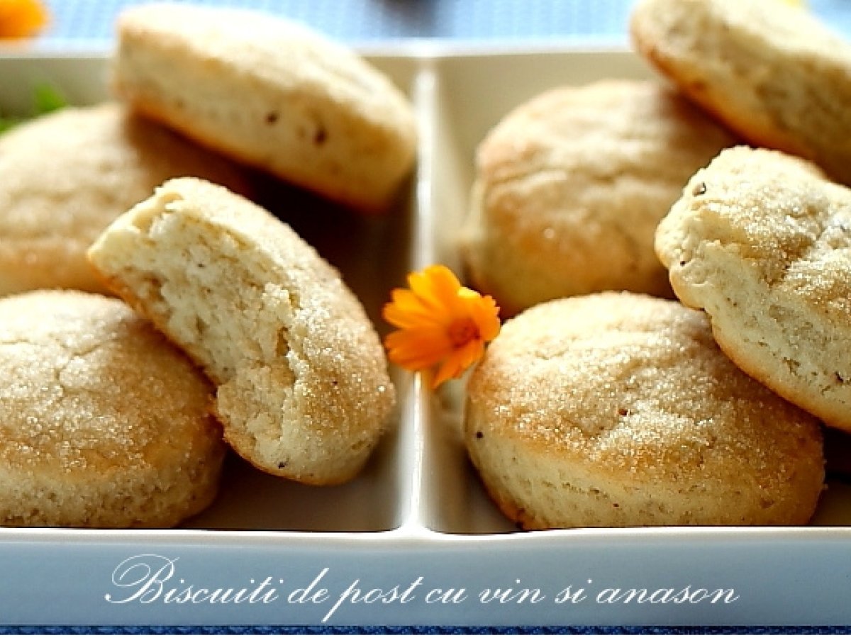 Biscuiti de post cu vin si anason AlteleFoarte ușor35 min696 Kcal Trimite unui prieten Printează pagina Adresează o întrebare autorului Postează o poză cu rețeta gătită de tine Ingrediente 6 500 g faina 140 g vin alb 125 g ulei 200 g zahar 1 lingurita anason praf 100 gr zahar 1 lingurita rasa praf de copt/amoniac Cost estimat: 2.19Euros€ (0.37€/porție)