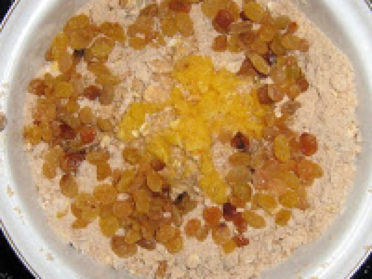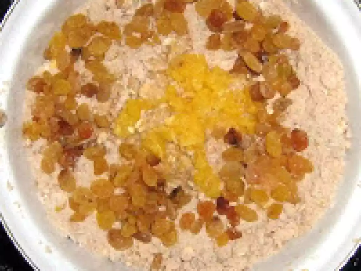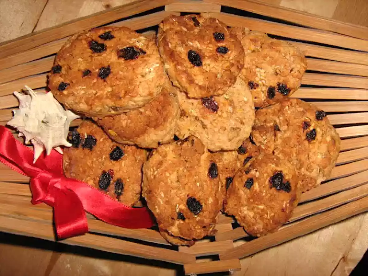 Biscuiti integrali cu stafide si migdale PrecedentulUrmătorul AlteleFoarte ușor1 h 30 m Trimite unui prieten Printează pagina Adresează o întrebare autorului Postează o poză cu rețeta gătită de tine Ingrediente 4 350 g faina alba 1 lingurita praf de copt 170 g fulgi de cereale combinate (ovaz, grau, secara, porumb, orz) 2 lingurite scortisoara macinata 250 g unt taiat cubulete 150 g stafide aurii 300 g zahar tos 100 g migdale tocate un ou batut zeama si pulpa de la o portocala zeama de la 1/2 de lamaie putin rom 1/2 de lingurita