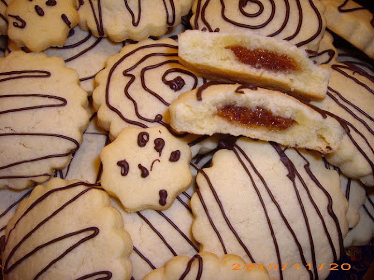 Biscuiti umpluti cu dulceata de smochine PrecedentulUrmătorul AlteleFoarte ușor30 min Trimite unui prieten Printează pagina Adresează o întrebare autorului Postează o poză cu rețeta gătită de tine Ingrediente 6 500 g faina 250 g unt 120 g zahar doua oua o fiola esenta vanilie un picut de sare 4 g praf de copt pentru umplutura: dulceata de smochine + un piscot ciocolata amaruie pentru decorat