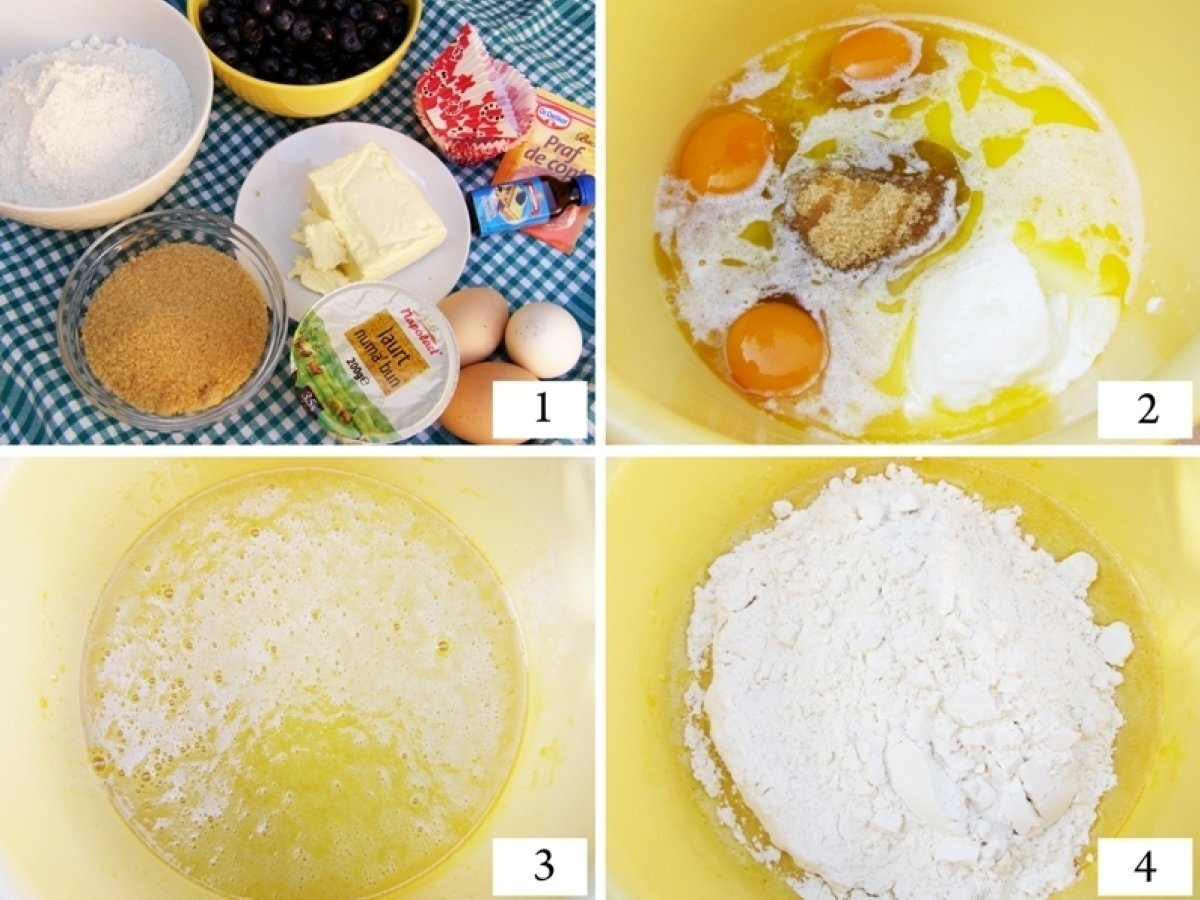 Briose cu afine PrecedentulUrmătorul AlteleFoarte ușor40 min Trimite unui prieten Printează pagina Adresează o întrebare autorului Postează o poză cu rețeta gătită de tine Ingrediente 8 Ingrediente (foto 1) pentru 12 briose grasune: 1. 400 gr afine 2. 350 gr faina 3. 150 gr zahar brun 4. 120 gr unt 5. 150 gr iaurt natural 6. 3 oua 7. un pliculet praf de copt 8. esenta de vanilie 9. hartii pentru briose si optional zahar praf pentru pudrat