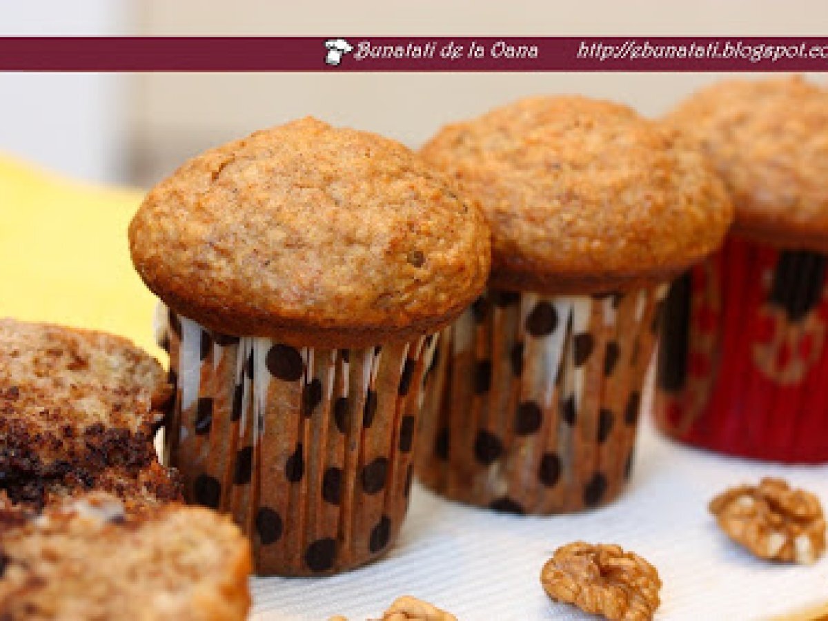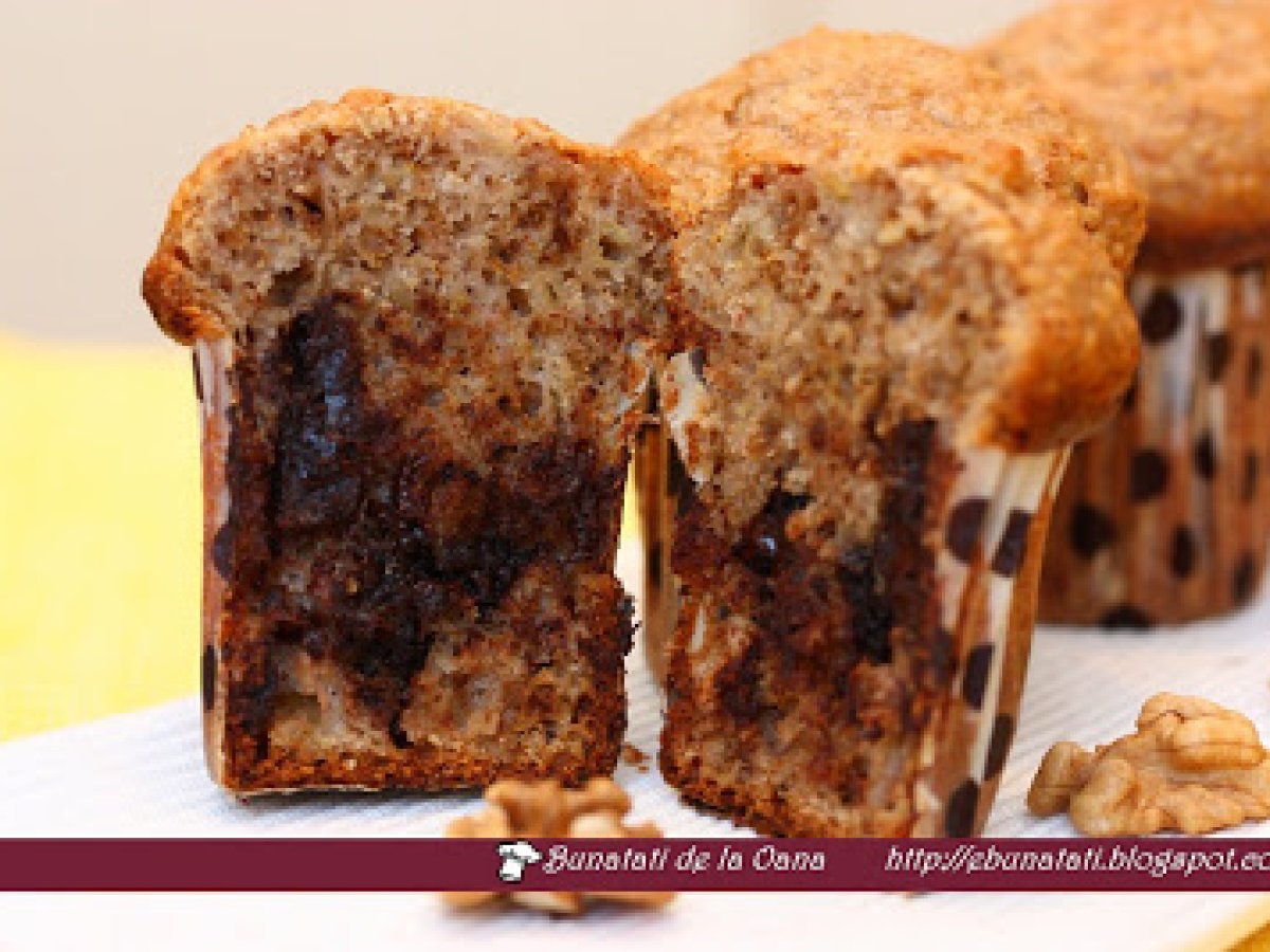 Briose cu banane, nuci si ciocolata PrecedentulUrmătorul AlteleFoarte ușor35 min Trimite unui prieten Printează pagina Adresează o întrebare autorului Postează o poză cu rețeta gătită de tine Ingrediente 4 55 g unt 175 g zahar 2 oua 2 banane foarte coapte 300 g faina 1 pachet praf de copt 200 g nuci tocate sau macinate fin, dupa preferinta o ciocolata cu lapte ( 100 g ) 120 ml lapte batut