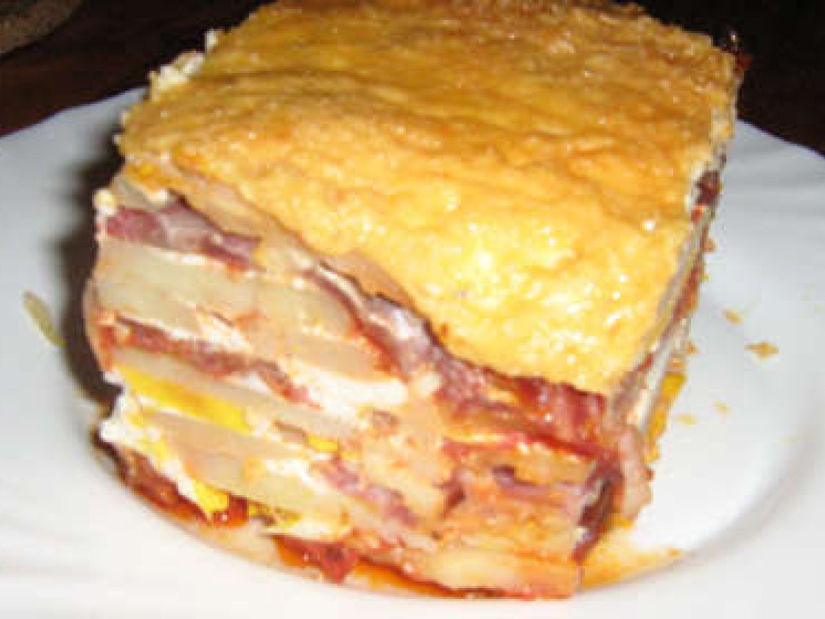 Cartofi cu carnati la cuptor AlteleUșor1 h 40 m Trimite unui prieten Printează pagina Adresează o întrebare autorului Postează o poză cu rețeta gătită de tine Ingrediente 2 1 kg cartofi rosii,200 gr carnati,4 oua,1 ceapa mai mare,smantana,sos beschamel,ketchup,sare,piper,vegeta