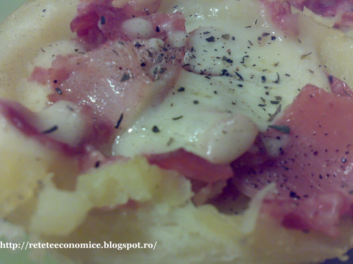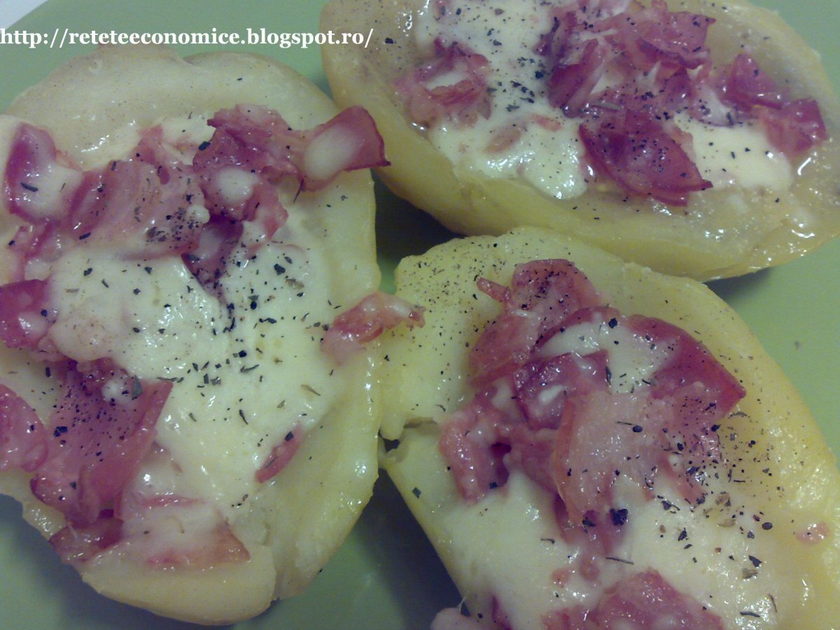 Cartofi umpluti cu cascaval si bacon PrecedentulUrmătorul AlteleUșor2 ore Trimite unui prieten Printează pagina Adresează o întrebare autorului Postează o poză cu rețeta gătită de tine Simplu si in acelasi timp surprinzator Ingrediente 4 8 cartofi medii 250 g cascaval 300 g bacon 100 g unt cimbru uscat busuioc uscat sare piper.