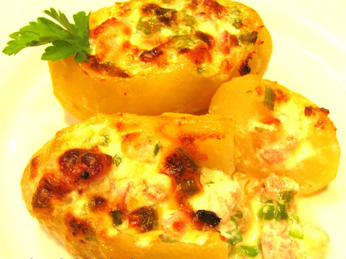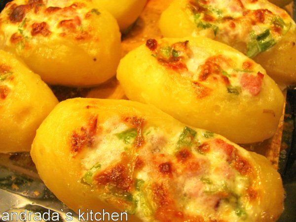 Cartofi umpluti cu mascarpone si sunca afumata PrecedentulUrmătorul AlteleUșor1 oră Trimite unui prieten Printează pagina Adresează o întrebare autorului Postează o poză cu rețeta gătită de tine Ingrediente 8 12 cartofi medii 150 gr mascarpone 150 gr sunca afumata 2 cozi de ceapa verde 1 lingura unt piper alb