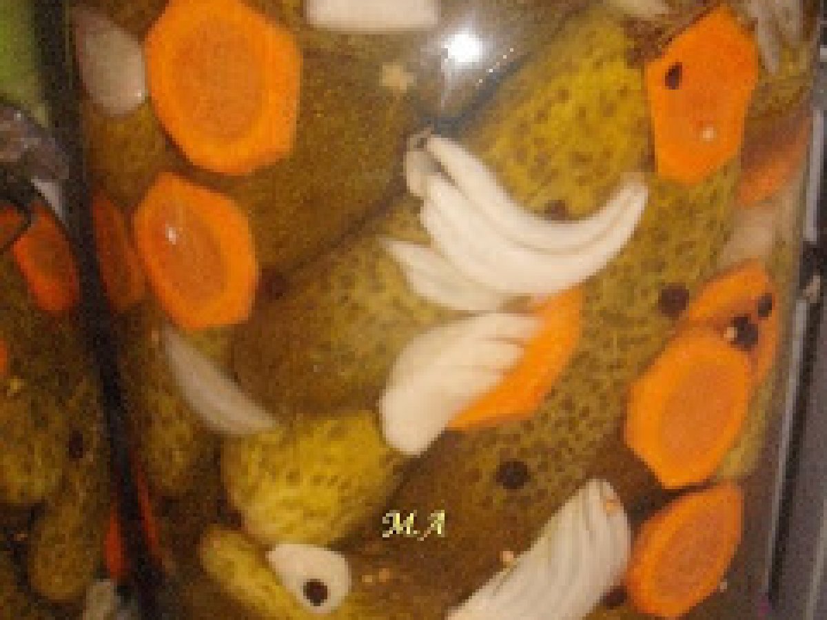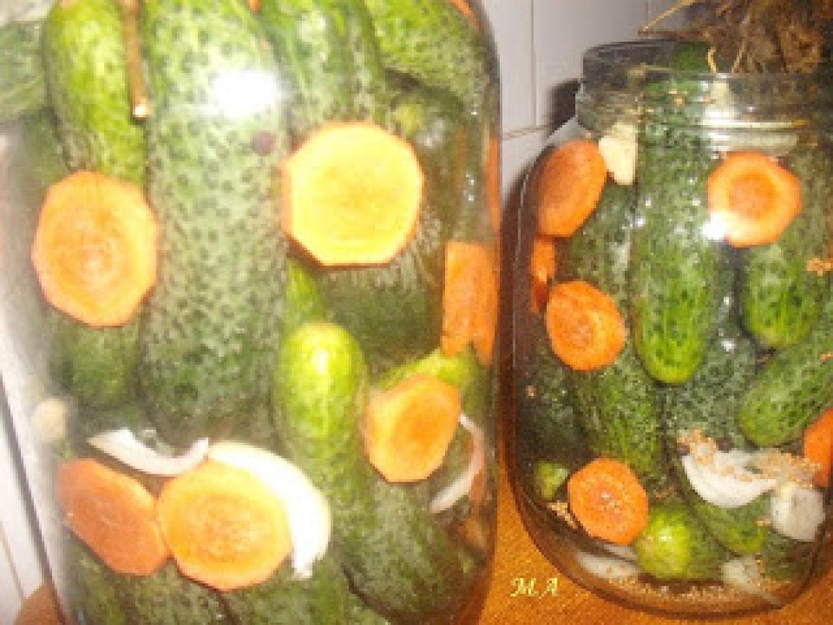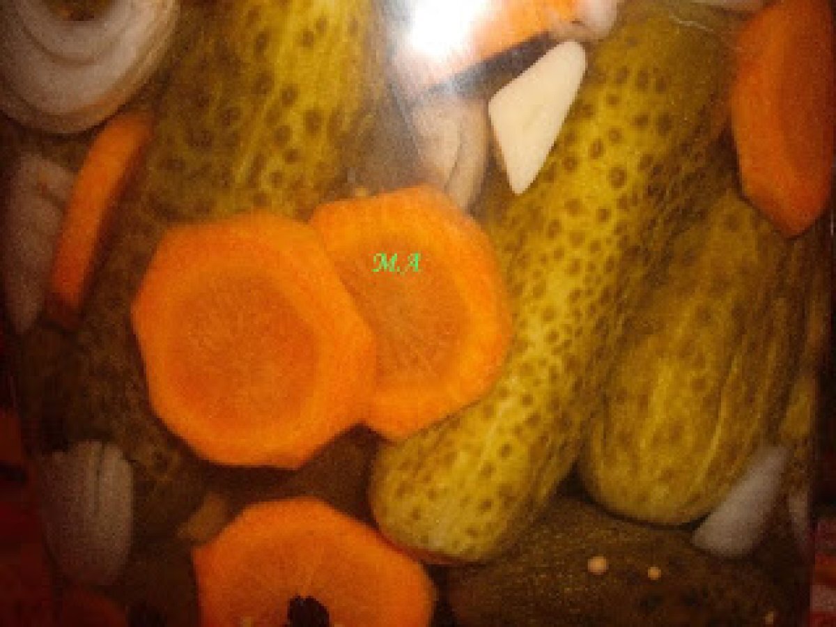 Castraveti marinati cu otet(bulgaresti) PrecedentulUrmătorul AlteleFoarte ușor15 min Trimite unui prieten Printează pagina Adresează o întrebare autorului Postează o poză cu rețeta gătită de tine Ingrediente 4 castraveti otet din vin de 9 grade-o parte la patru parti de apa sare mare neiodata-o lingura la litrul de lichid zahar-o lingura la litrul de lichid boabe de piper boabe de mustar foi dafin floare de marar ceapa taiata pestisori felii de morcov usturoi