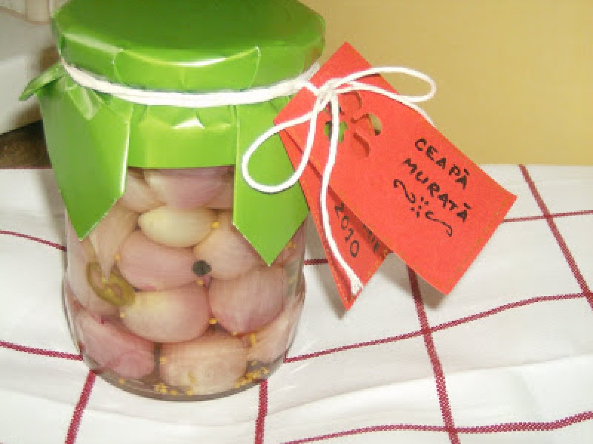 Ceapa murata PrecedentulUrmătorul AlteleFoarte ușor15 min Trimite unui prieten Printează pagina Adresează o întrebare autorului Postează o poză cu rețeta gătită de tine Ingrediente 6 500 g ceapa marunta 500 ml otet de vin 13 g sare 85 g zahar o jumatate lingurita piper boabe o jumatate lingurita coriandru boabe o jumatate lingurita mustar boabe un ardel iute