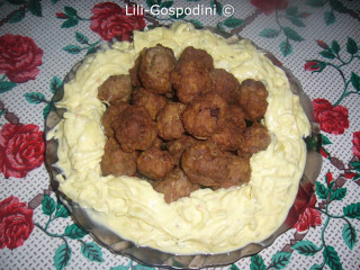 Chiftelute cu ceapa si maioneza PrecedentulUrmătorul AlteleFoarte ușor25 min Trimite unui prieten Printează pagina Adresează o întrebare autorului Postează o poză cu rețeta gătită de tine Ingrediente 6 1 kg carne tocata 2 oua 1 lingurita delikat usturoi faina sare piper ulei 5 cepe medii 3 frunze dafin delikatcateva boabe piper 50 ml otet 2-3 linguri zahar maioneza din 2 oua