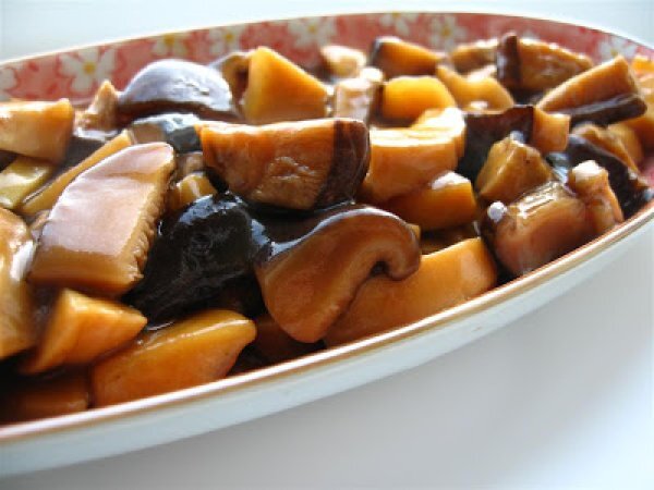 Ciuperci cu bambus PrecedentulUrmătorul AlteleFoarte ușor50 min Trimite unui prieten Printează pagina Adresează o întrebare autorului Postează o poză cu rețeta gătită de tine Ingrediente 6 3 bucati de bambus proaspete sau de la cutie 8 ciuperci negre 2 catei de usturoi 3 lingurite de ulei vegetal 4 lingurite sos de soia 1 lingurita otet de vin 1 lingurita amidon de porumb un praf de sare 1 lingurita zahar