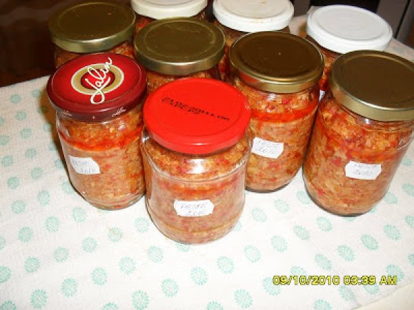 Conserve de peste AlteleFoarte ușor15 min Trimite unui prieten Printează pagina Adresează o întrebare autorului Postează o poză cu rețeta gătită de tine Ingrediente 4 2 kg peste 1 kg ardei capia 4 cepe mari 1 telina data pe razatoarea mare 400 ml bulion rosii 150 ml ulei 2 linguri otet sare, piper foi dafin usturoi cate un bob la fiecare borcan