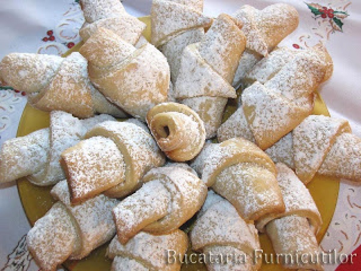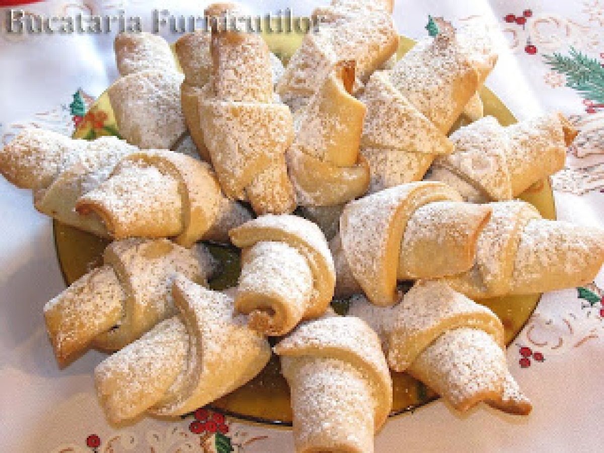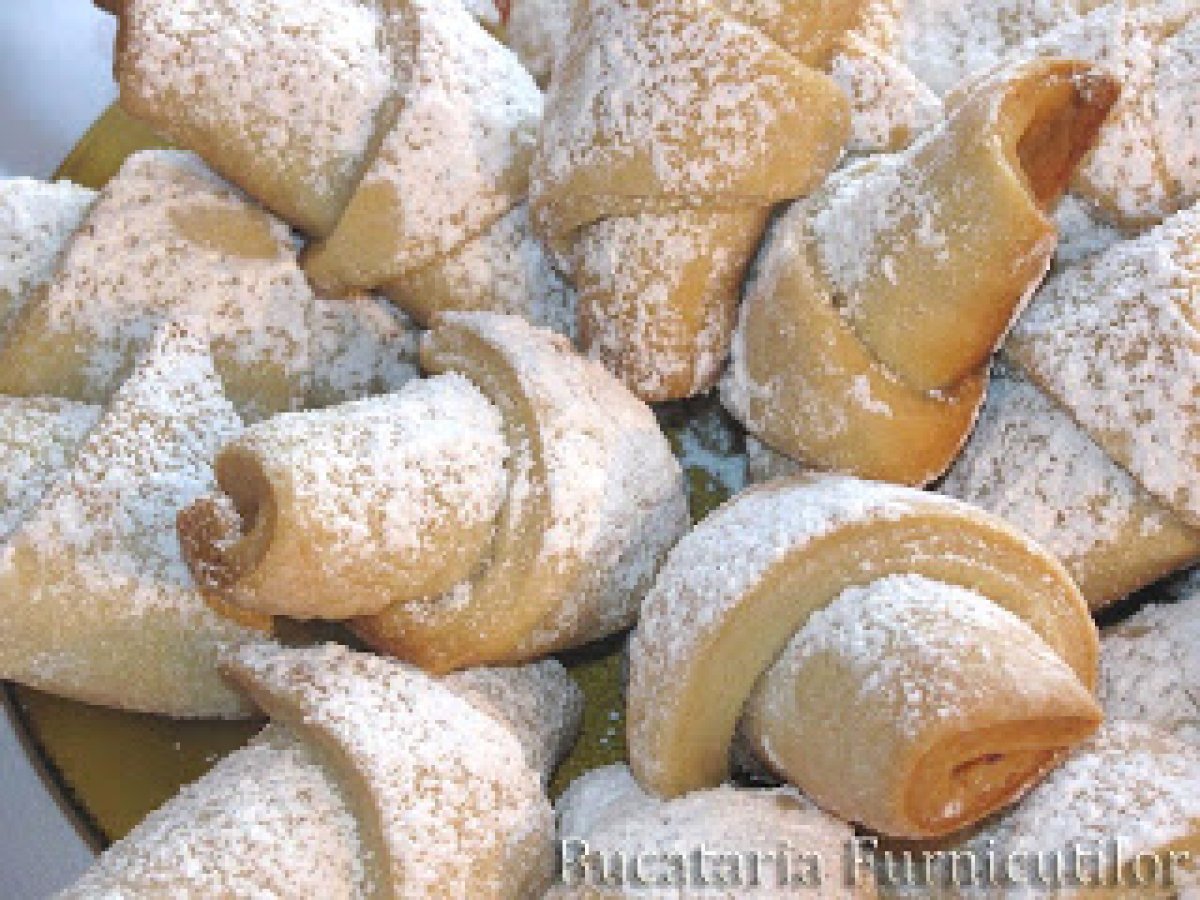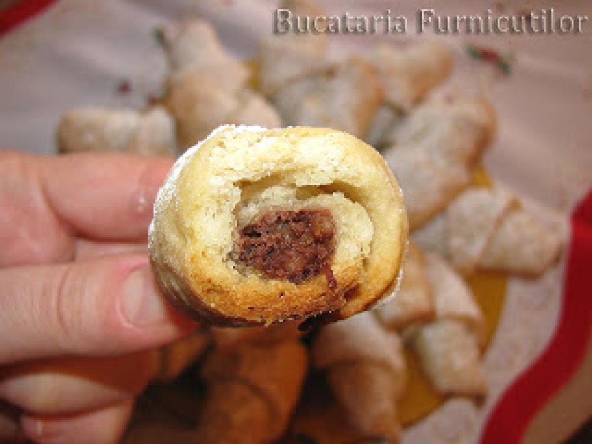 Cornulete cu gem PrecedentulUrmătorul AlteleFoarte ușor35 min Trimite unui prieten Printează pagina Adresează o întrebare autorului Postează o poză cu rețeta gătită de tine Ingrediente 6 500 g faina 100 - 130 ml bors 200 ml ulei 50 g nuci 100 g dulceata sau magiun 1 lingurita drojdie uscata 1 lingurita zahar esenta de lamaie un praf de sare