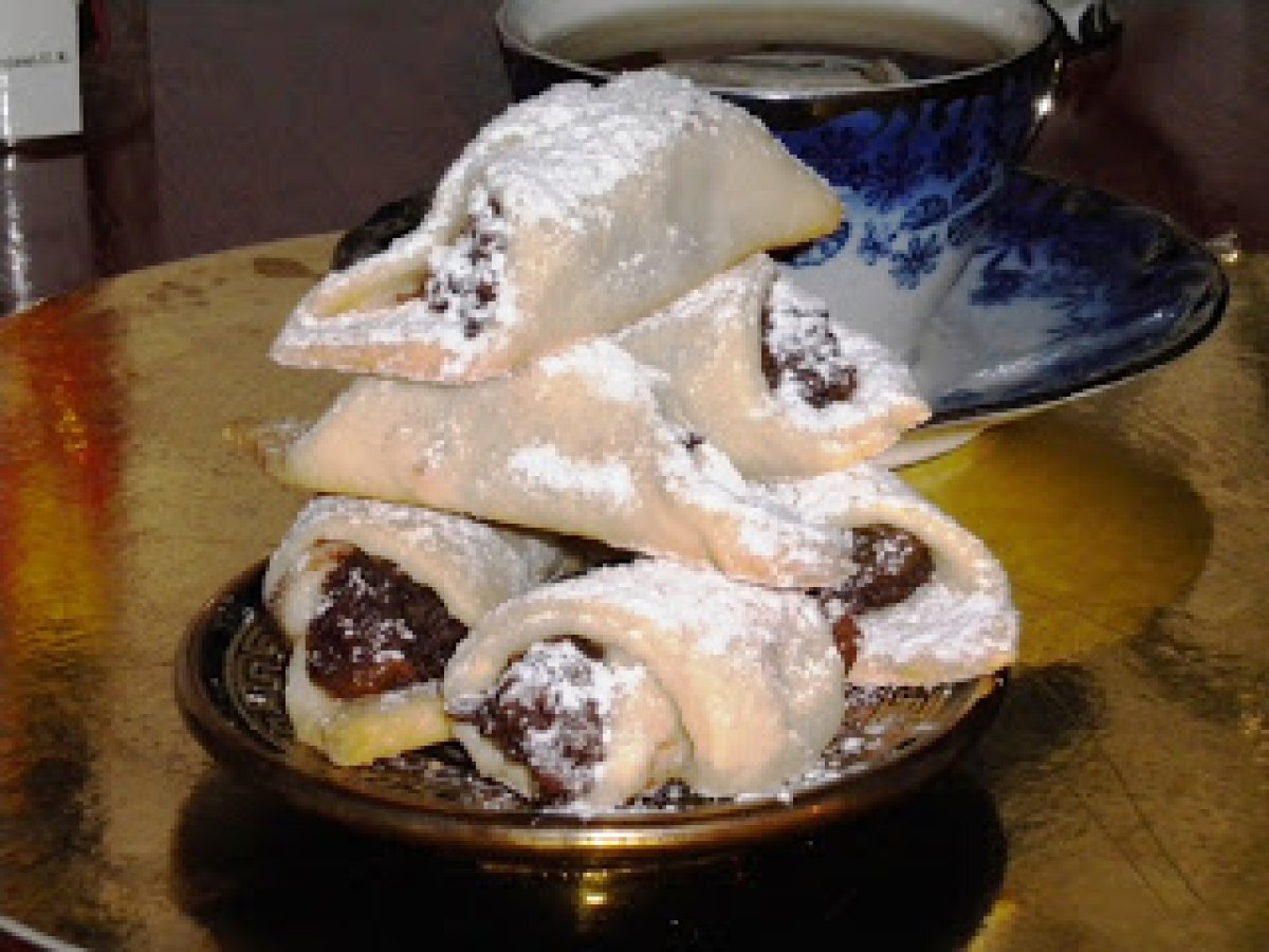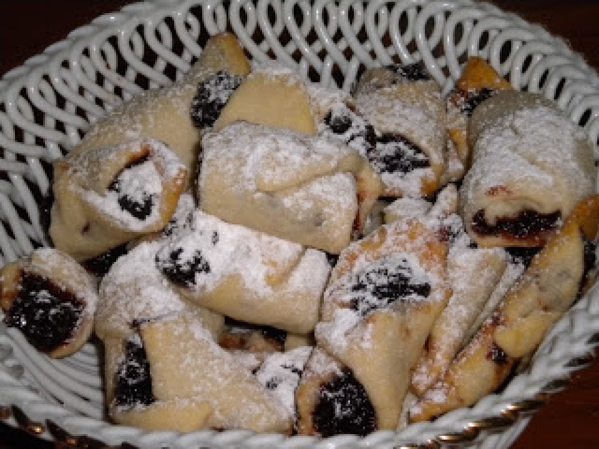 Cornulete fara zahar PrecedentulUrmătorul AlteleFoarte ușor30 min Trimite unui prieten Printează pagina Adresează o întrebare autorului Postează o poză cu rețeta gătită de tine Ingrediente 4 100 g de smantana, 100 ml de ulei, 100 g unt/margarina, un varf de lingurita de sare si un plic de drojdie (25 g) Umplutura de nuci: o cana de nuci macinate, 2 albusuri spuma, o lingura de stafide, 2 lingurite de cacao, 8-10 pastile de zaharina pisata. Umplutura de gem: 200 g gem fara zahar