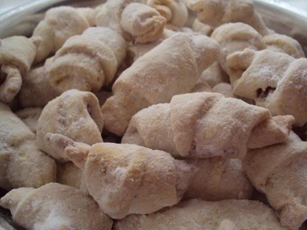 Cornulete fragede (cu untura) a la lia PrecedentulUrmătorul AlteleFoarte ușor35 min Trimite unui prieten Printează pagina Adresează o întrebare autorului Postează o poză cu rețeta gătită de tine Din ingredientele de mai jos au rezultat 60 de cornulete de vreo 6-7 cm Ingrediente 4 200 g untura moale dar nu lichida 550 g faina 2 pliculete praf de copt un galbenus 3-4 linguri smantana grasa sare cat iei in trei degete coaja rasa de la o lamaie putina apa (numai daca este nevoie) 150g rahat taiat bastonase 200 g zahar pudra