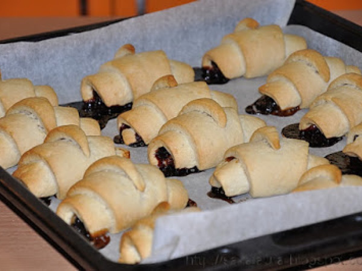 Cornulete umplute cu gem (cu bors) PrecedentulUrmătorul AlteleFoarte ușor45 min Trimite unui prieten Printează pagina Adresează o întrebare autorului Postează o poză cu rețeta gătită de tine Ingrediente 6 1 pahar de ulei 1/2 pahar de bors 25 g. drojdie proaspata sau o lingurita de drojdie uscata 1 varf de cutit sare 1 lingurita esenta de vanilie sau portocale 500 g. faina gem de prune/magiun, rahat sau nuca coaja rasa de lamaie