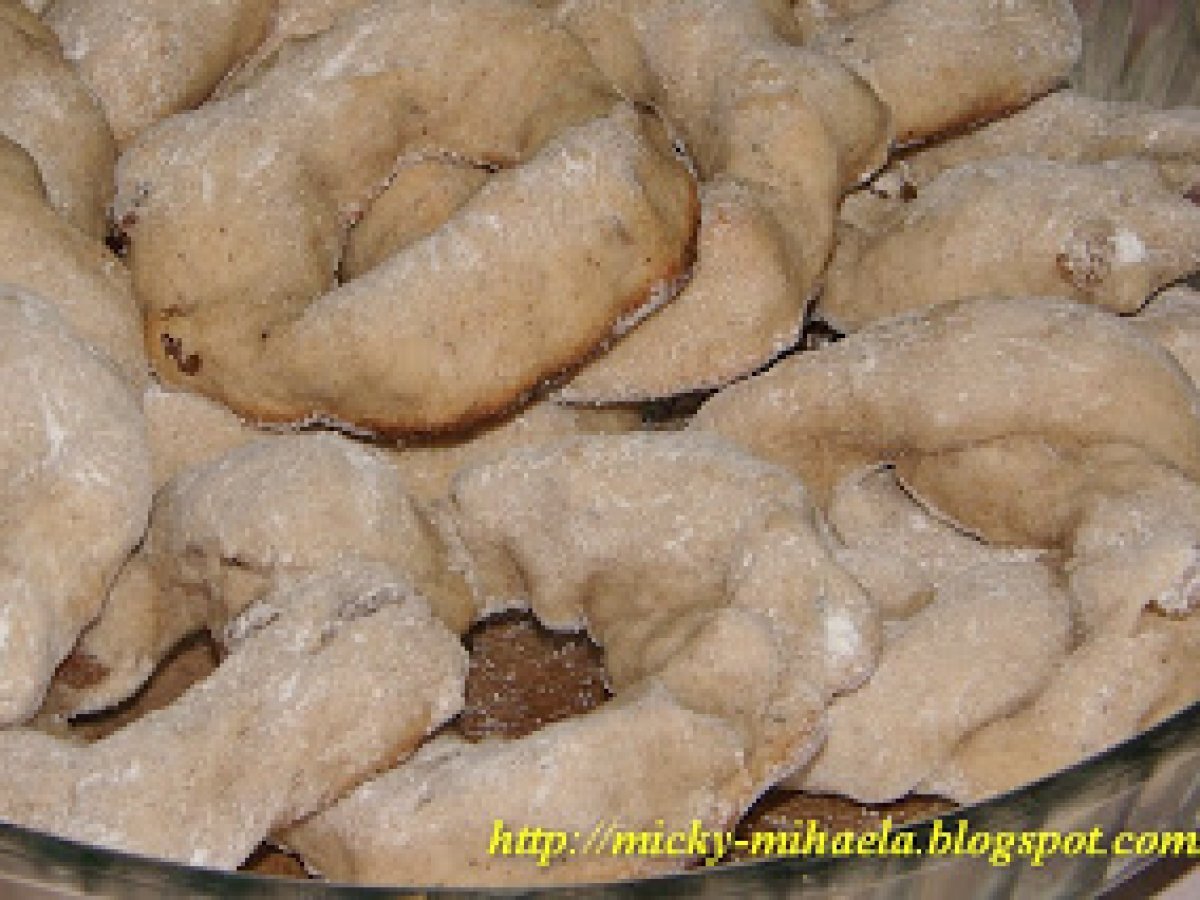 Covrigei cu stafide si scortisoara - de post AlteleFoarte ușor35 min Trimite unui prieten Printează pagina Adresează o întrebare autorului Postează o poză cu rețeta gătită de tine Ingrediente 6 500 g faina, 200 ml apa, 25 g drojdie, 3 linguri ulei, 100 g zahar, 50 g stafide, 2 lingurite de scortisoara, un praf de sare, zahar pudra.