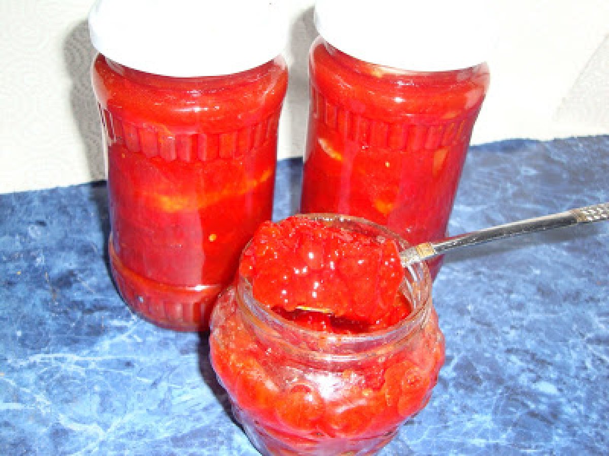 Dulceata de rosii PrecedentulUrmătorul AlteleFoarte ușor15 min724 Kcal Trimite unui prieten Printează pagina Adresează o întrebare autorului Postează o poză cu rețeta gătită de tine Ingrediente 6 2 kg rosii lunguiete coapte 1 kg zahar 1 lamaie 1 baton vanilie Cost estimat: 6.51Euros€ (1.09€/porție)