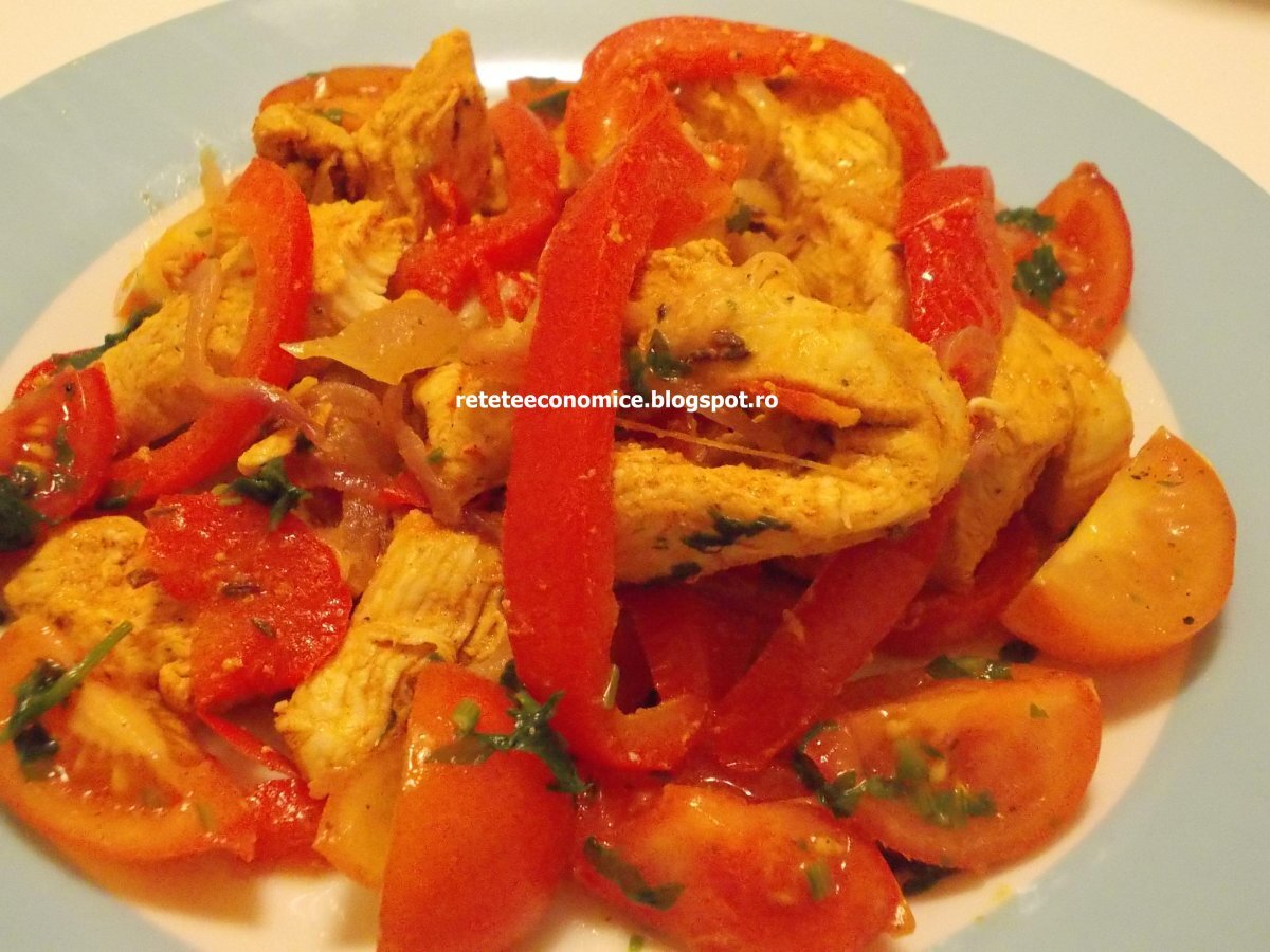 Fajitas de pui cu salsa de rosii PrecedentulUrmătorul AlteleUșor1 h 15 m Trimite unui prieten Printează pagina Adresează o întrebare autorului Postează o poză cu rețeta gătită de tine O explozie de arome Ingrediente 4 un piept de pui mare (circa 700-800g) un ardei gras rosu mare 2 cepe rosii 3 linguri boia dulce/iute doua linguri seminte chimion 2 limes un ardei iute mediu 300-400g rosii cherry o mana patrunjel ulei de masline sare piper.