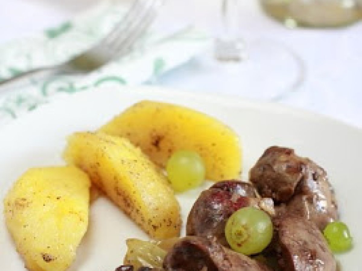Ficat de pui cu struguri AlteleFoarte ușor30 min Trimite unui prieten Printează pagina Adresează o întrebare autorului Postează o poză cu rețeta gătită de tine Ingrediente 4 500 g ficat de pui 150 g struguri albi 1 ceapa 200 ml vin alb dulce 50g unt 50 ml ulei 1 lingurita chimion piper