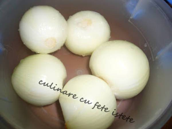 Intre timp ,punem o oala de tuci pe foc, infierbantam uleiul apoi punem ceapa tocata.