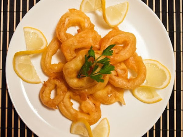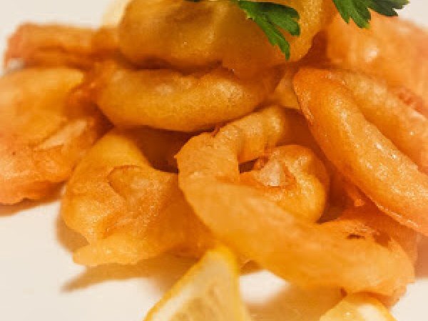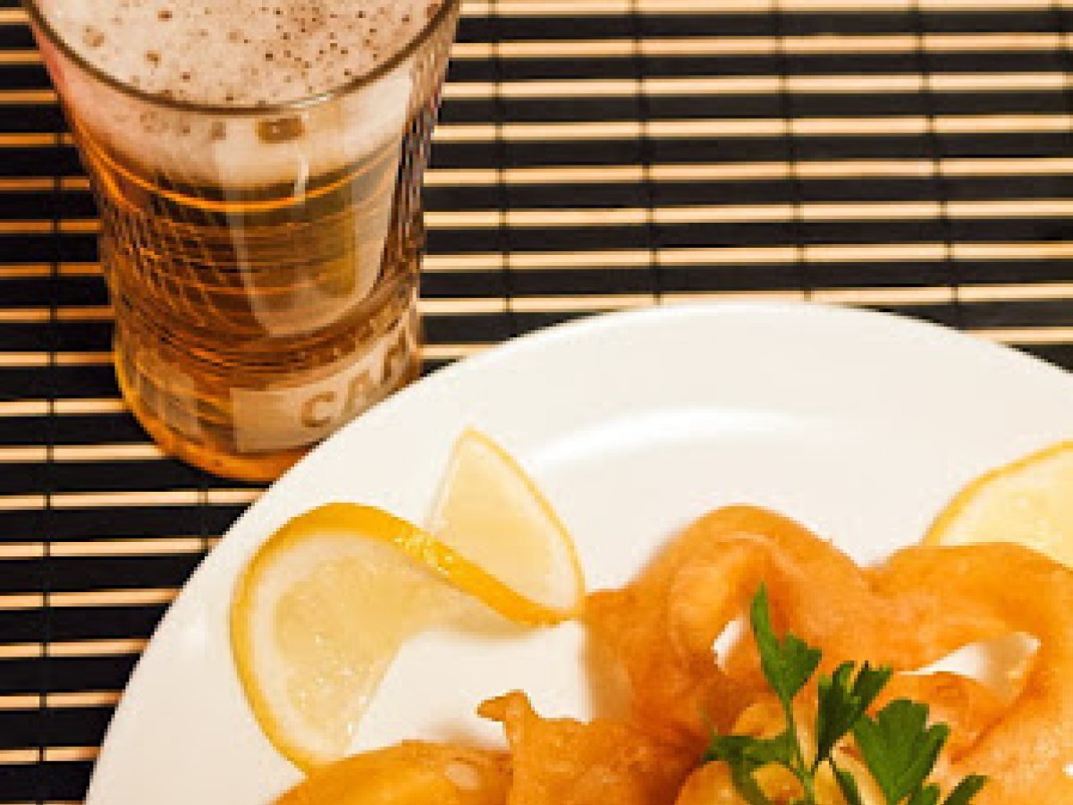 - Lasam la dezghetat inelele de calamar, le trecem printr-un jet de apa si le punem la scurs pe un servet de hartie.
