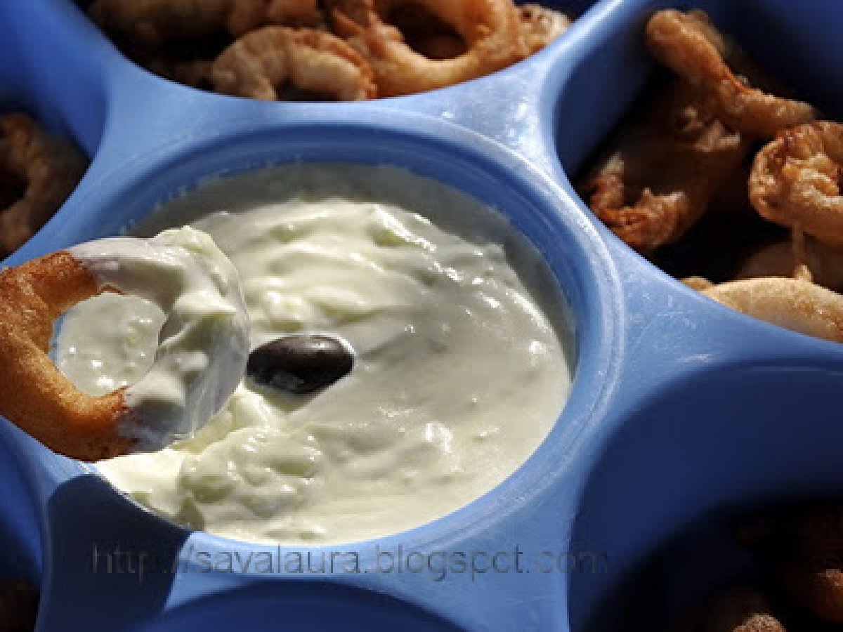 Inele de calamari prajite PrecedentulUrmătorul AlteleFoarte ușor20 min Trimite unui prieten Printează pagina Adresează o întrebare autorului Postează o poză cu rețeta gătită de tine Ingrediente 4 Calamari: 600 g. inele de calamari congelate sare, piper sucul de la 1 lamaie 25 ml. Ouzo 100 g. faina 100 g. amidon 3 oua 200 ml.vin alb 1 praf zahar ulei pentru prajit Sos de castraveti: 1 castravete 3 catei de usturoi 1 ceapa 200 g. branza de vaci 200 g. iaurt 2 linguri mari smantana acra 2 linguri ulei de masline 2 lingurite marar tocat