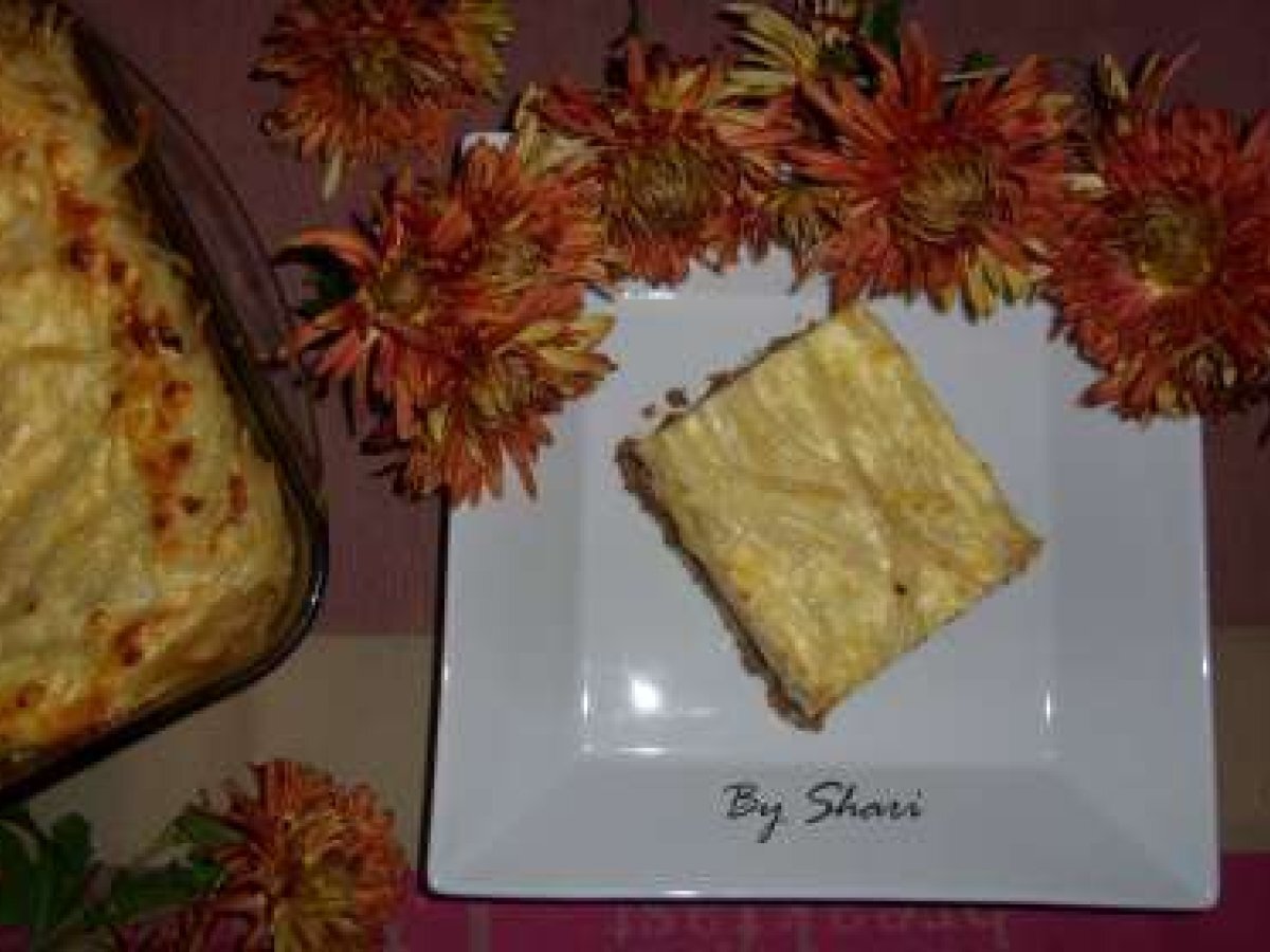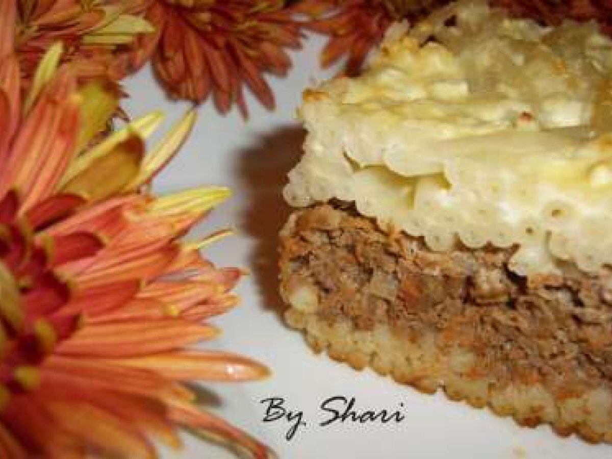 Lasagna de macaroane PrecedentulUrmătorul AlteleUșor1 h 30 m Trimite unui prieten Printează pagina Adresează o întrebare autorului Postează o poză cu rețeta gătită de tine Ingrediente 8 macaroane carne tocata de vita (sau de orice alt fel) o ceapa un morcov o felie de telina o rosie pasta de tomate un pahar de vin rosu cimbru boia dulce piper sare Pentru amestecul de deasupra: branza telemea 4 oua