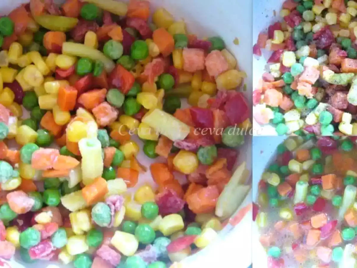 Legume mexicane sotate PrecedentulUrmătorul AlteleFoarte ușor40 min Trimite unui prieten Printează pagina Adresează o întrebare autorului Postează o poză cu rețeta gătită de tine Mie imi plac tare mult legumele mexicane, sunt garnitura perfecta pentru o Ingrediente 4 250 gr legume Mexicane 2-3 linguri ulei de masline 50 ml vin alb sare, piper