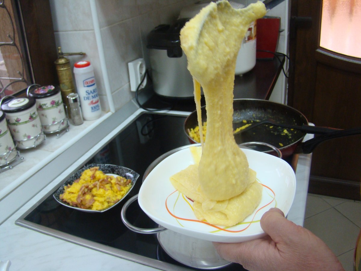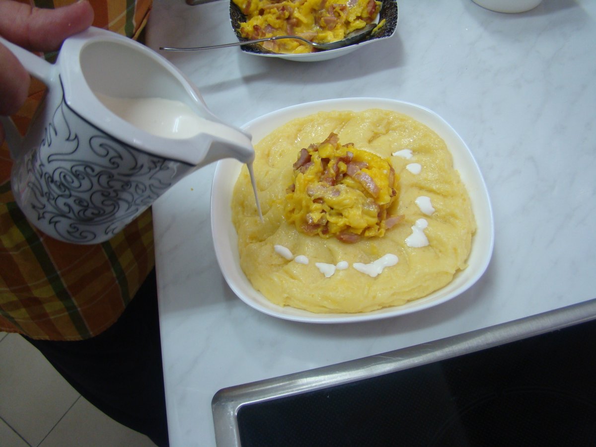 M.b.s. mamaliguta cu branza si smantana PrecedentulUrmătorul AlteleUșor45 min Trimite unui prieten Printează pagina Adresează o întrebare autorului Postează o poză cu rețeta gătită de tine Ingrediente 4 750 g faina de malai apa sare 100 g unt 300 g branza de burduf 300 g cascaval 200 g kaiser 8 oua putin ulei 200 g smantana lichida